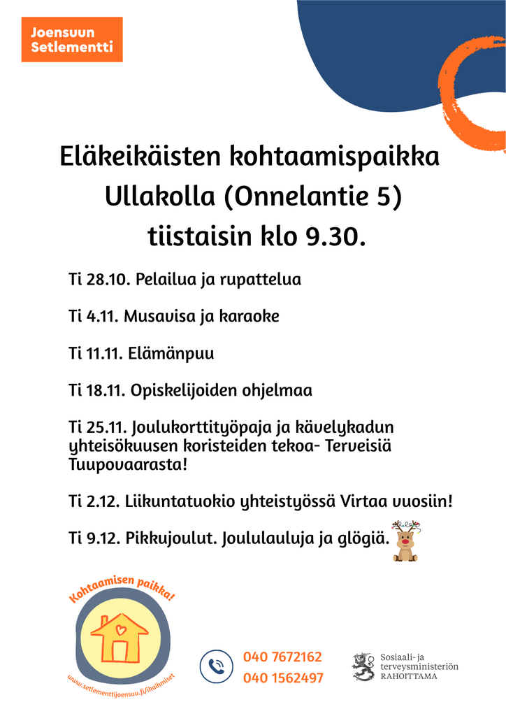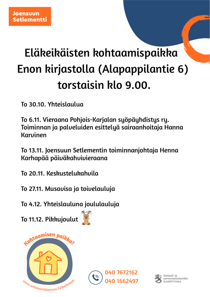 Järjestämme toimintaa Noljakassa ja Reijolassa, Enossa, Uimaharjussa, Kiihtelysvaarassa, Tuupovaarassa sekä Kontiolahdella. Tervetuloa mukaan!