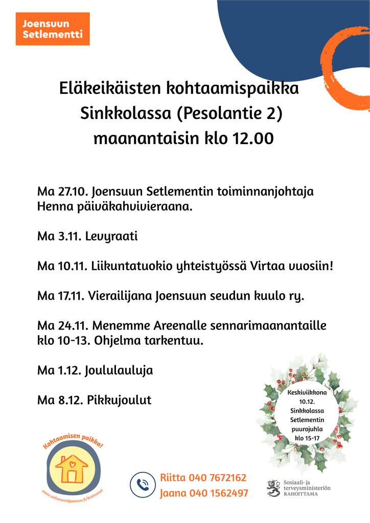 Sinkkolassa Maanantaisin klo 12.00 (Pesolantie 3)